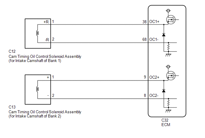 | Related DTCs | P0010: Cam timing oil control solenoid assembly (for intake camshaft of bank 1) range check P0020: Cam timing oil control solenoid assembly (for intake camshaft of bank 2) range check |