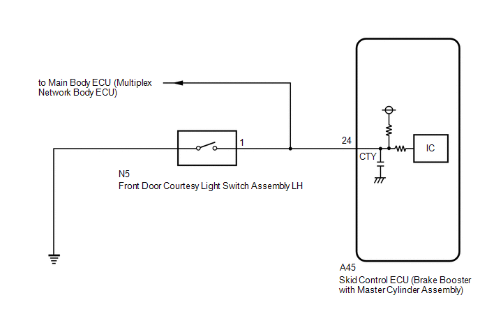 | A45-24 (CTY) - Body ground | Driver door open | 1.5 V or less |