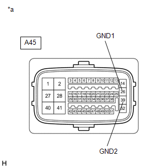 | A45-39 (GND2) - Body ground | Always | Below 1 Ω |