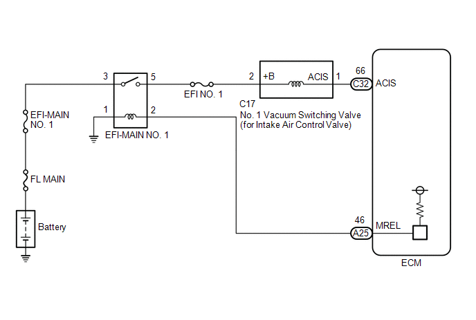 | 8. | CHECK HARNESS AND CONNECTOR (EFI-MAIN NO. 1 RELAY - NO. 1 VACUUM SWITCHING VALVE (FOR INTAKE AIR CONTROL VALVE SUB-ASSEMBLY)) |