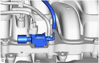 | (a) Disconnect the vacuum hose sub-assembly from the No. 1 vacuum switching valve (for intake air control valve sub-assembly). |
