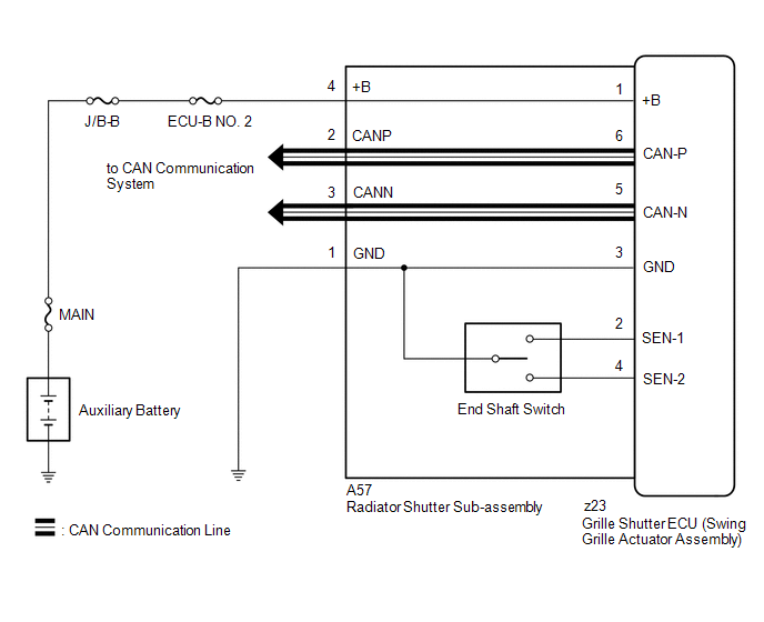 | z23-2 (SEN-1) - A57-1 (GND) | Grille shutter fully closed | Below 1 Ω |