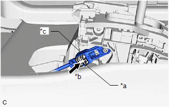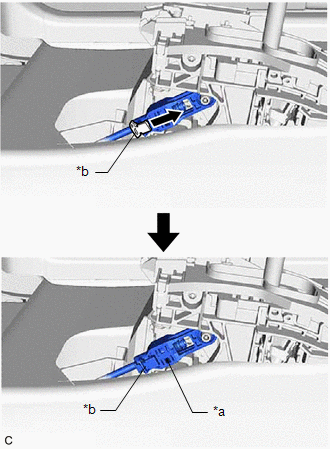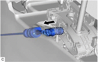 | (9) Move the adjuster case cover in the direction shown by the arrow. NOTICE: If the adjuster case cover is not moved far enough so that the adjuster case cover engages the lock piece, the transmission control cable assembly will not be able to lock, and reliable shift operation will not be possible. |