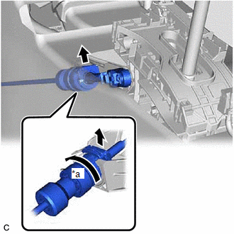 | (6) Connect the transmission control cable assembly to the transmission floor shift assembly. NOTICE: After installation, check that the outer part of the stopper is as shown in the illustration. |