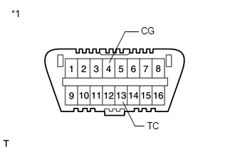 | (a) Using SST, connect terminals 13 (TC) and 4 (CG) of the DLC3 with the engine switch off. SST: 09843-18040 |