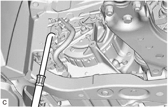 | (e) Wait until the automatic transaxle fluid flow slows and only drips come out. |