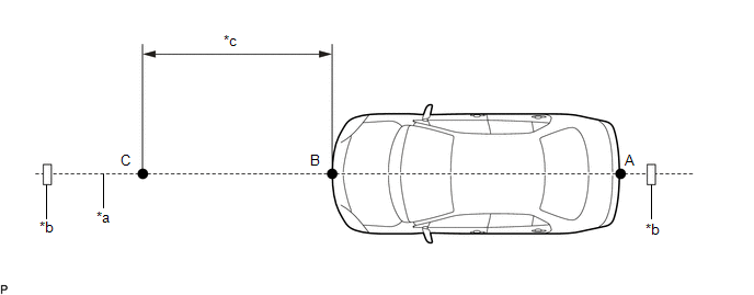 (3) Using tape and a string, create a line that connects point B to point A and extends at least 3000 mm (9.84 ft.) beyond the front center point of the vehicle.