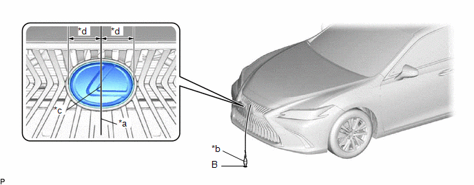 (2) Hang a weight with a pointed tip from the center of the front emblem, and mark the front center point of the vehicle (point B) on the ground.