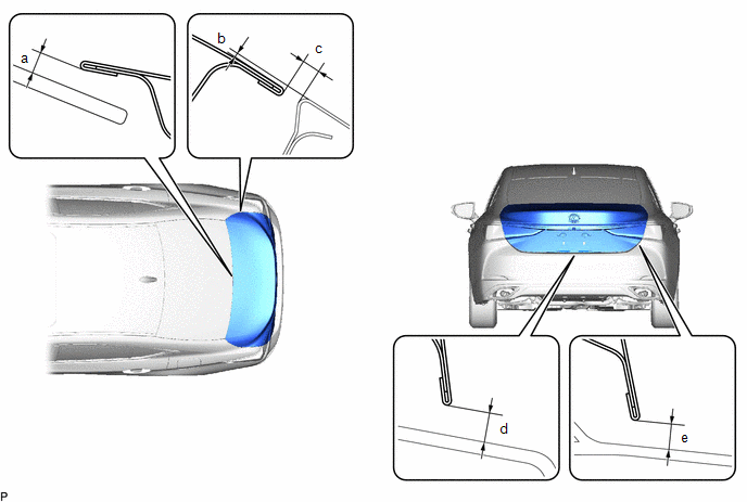 (a) Check that the clearance measurements of areas a through e are within each standard range.