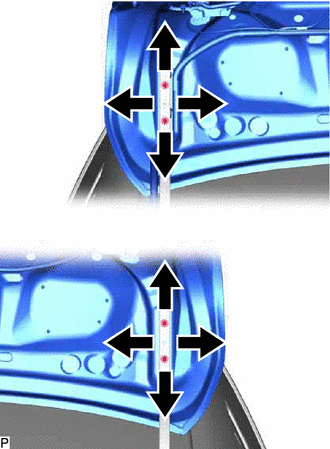 | (a) Loosen the 4 door side hinge bolts to adjust the door horizontally and vertically. |