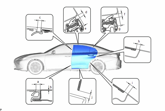 (a) Check that the clearance measurements of areas a through j are within each standard range.