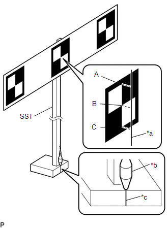 | (j) Move SST (reflector) up or down so that the center of the 3 target sheets is at the height shown in the illustration, and secure SST (reflector) in place. HINT: If the center of the target sheet is not within +/- 6 mm (0.24 in.) of the height specified, adjust the position of SST (reflector) so that the height is as specified. |
