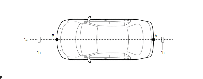 (b) Hang a weight with a pointed tip from the center of the front emblem, and mark the front center point of the vehicle (point B) on the ground (placement position).