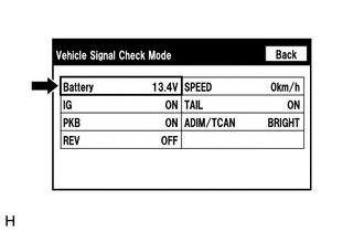 | (a) Enter the "Vehicle Signal Check Mode" screen. Refer to Check Vehicle Signal in Operation Check. Click here |