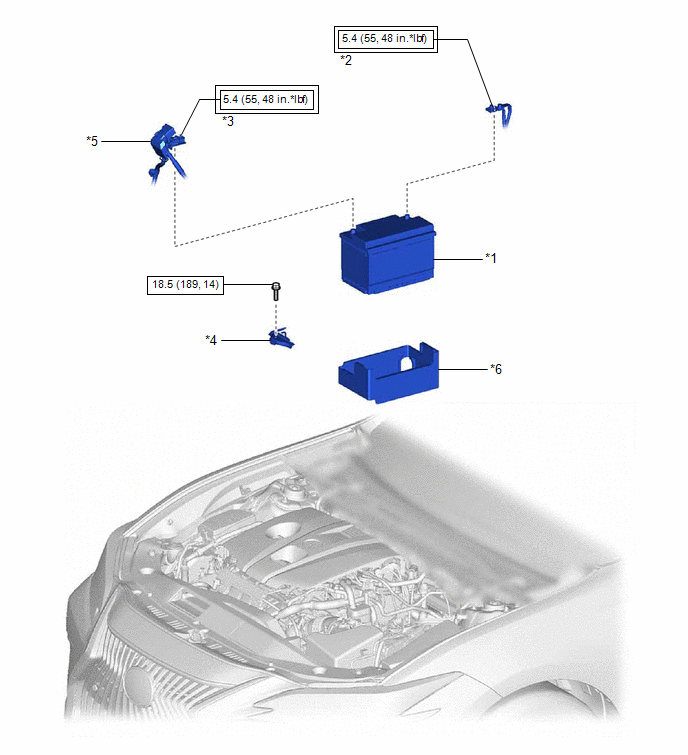 | *3 | POSITIVE BATTERY TERMINAL | *4 | NO. 2 BATTERY CLAMP |