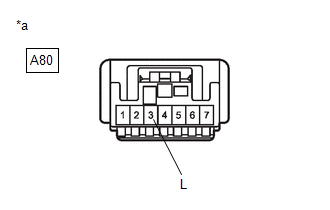 | A80-3 (L) - Body ground | Brake pedal released | Below 1.5 V |