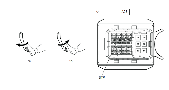 | A28-21 (STP) - Body ground | Brake pedal released | Below 1.5 V |