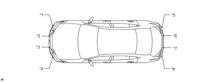 | *7 | Rear Center Ultrasonic Sensor LH | *8 | Rear Corner Ultrasonic Sensor LH |