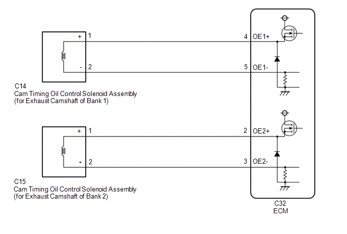 | 4. | CHECK HARNESS AND CONNECTOR (CAM TIMING OIL CONTROL SOLENOID ASSEMBLY (FOR EXHAUST CAMSHAFT) - ECM) |
