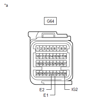 | G64-36 (IG2) - Body ground | Power switch on (IG) | 11 to 14 V |