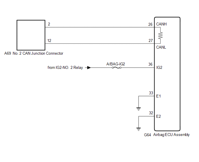 | 1. | CHECK FOR OPEN IN CAN BUS LINES (AIRBAG ECU ASSEMBLY MAIN LINE) |