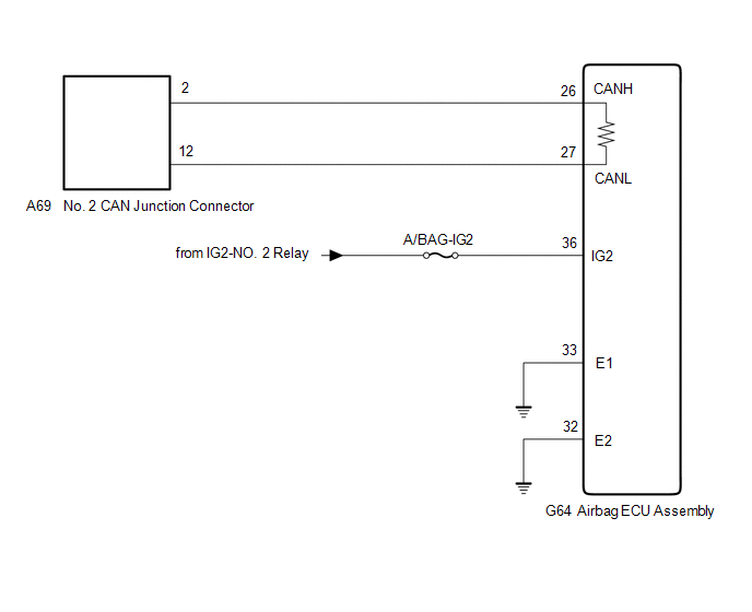 | 1. | CHECK FOR OPEN IN CAN BUS LINES (AIRBAG ECU ASSEMBLY MAIN LINE) |