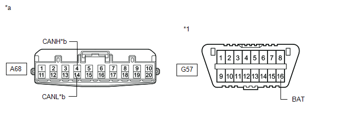 | *a | Front view of wire harness connector (to No. 1 CAN Junction Connector) | *b | to Central Gateway ECU (Network Gateway ECU) |