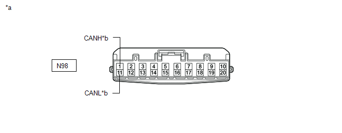 | *a | Front view of wire harness connector (to No. 6 CAN Junction Connector) | *b | to No. 1 CAN Junction Terminal |