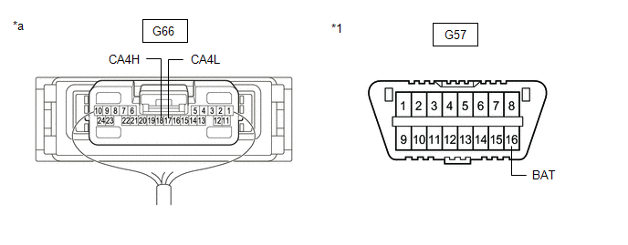 | *a | Front view of wire harness connector (to No. 4 CAN Junction Connector) | *b | to Central Gateway ECU (Network Gateway ECU) |