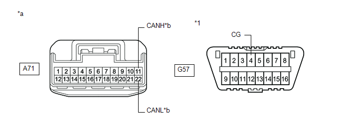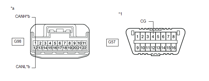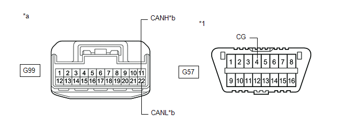 | *a | Front view of wire harness connector (to No. 4 CAN Junction Connector) | *b | to Central Gateway ECU (Network Gateway ECU) |
