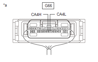 | Resistance between terminals 18 (CA4H) and 17 (CA4L) of the central gateway ECU (network gateway ECU) is below 54 Ω. |