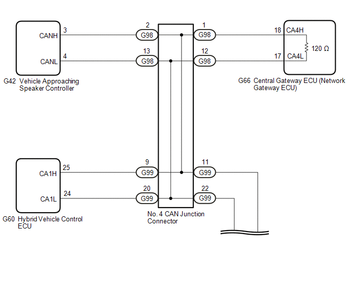| 5. | CHECK FOR SHORT IN CAN BUS LINES (NO. 4 CAN JUNCTION CONNECTOR - CENTRAL GATEWAY ECU (NETWORK GATEWAY ECU)) |
