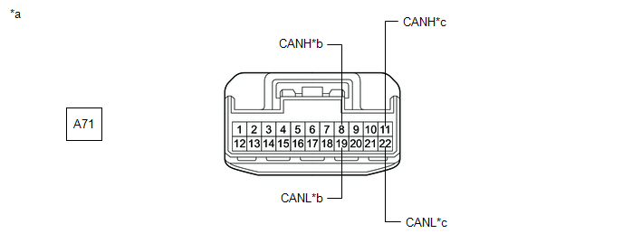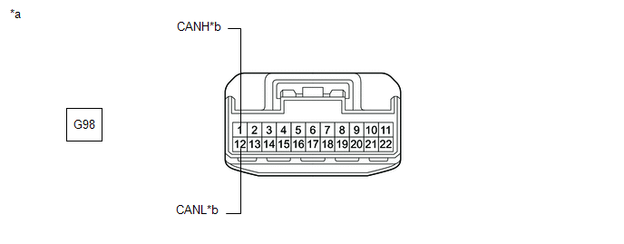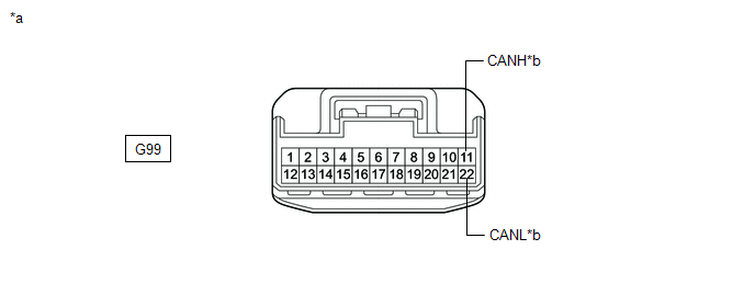 | *a | Front view of wire harness connector (to No. 4 CAN Junction Connector) | *b | to Central Gateway ECU (Network Gateway ECU) |