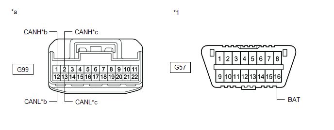 | *a | Front view of wire harness connector (to No. 4 CAN Junction Connector) | *b | to Central Gateway ECU (Network Gateway ECU) |