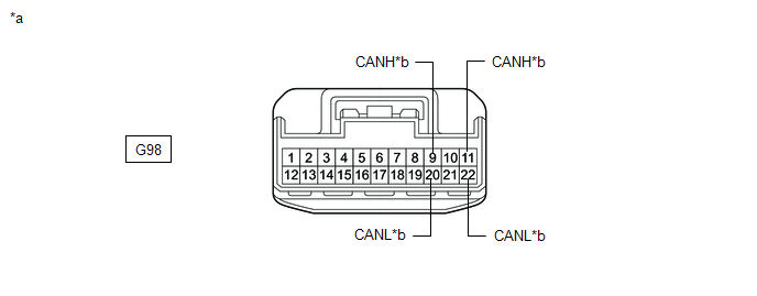 | *a | Front view of wire harness connector (to No. 4 CAN Junction Connector) | *b | to Central Gateway ECU (Network Gateway ECU) |