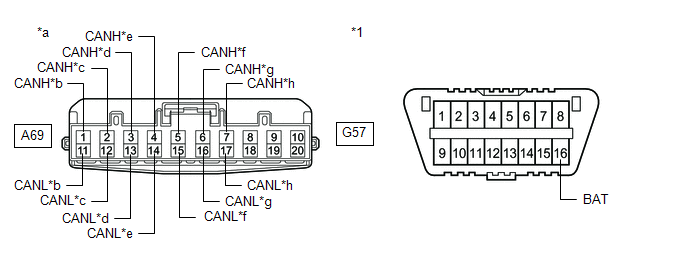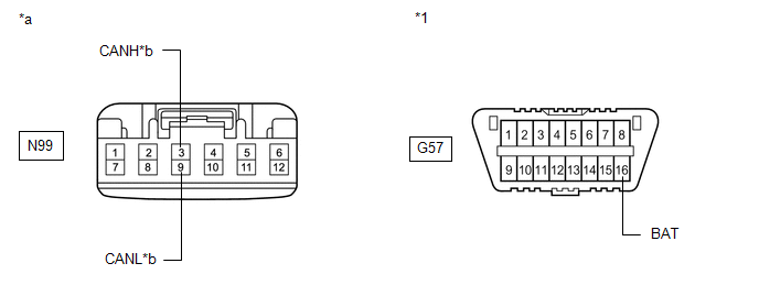 | *a | Front view of wire harness connector (to No. 4 CAN Junction Connector) | *b | to No. 2 CAN Junction Connector |