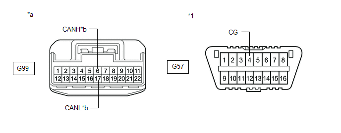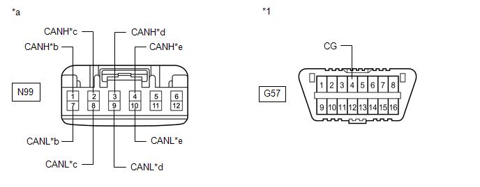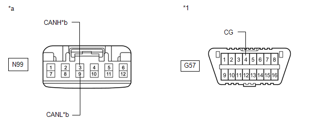 | *a | Front view of wire harness connector (to No. 7 CAN Junction Connector) | *b | to Central Gateway ECU (Network Gateway ECU) |
