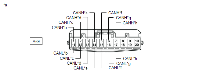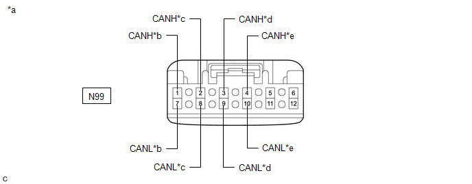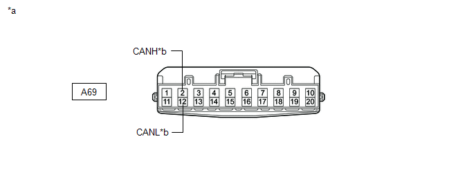 | *a | Front view of wire harness connector (to No. 4 CAN Junction Connector) | *b | to No. 2 CAN Junction Connector |