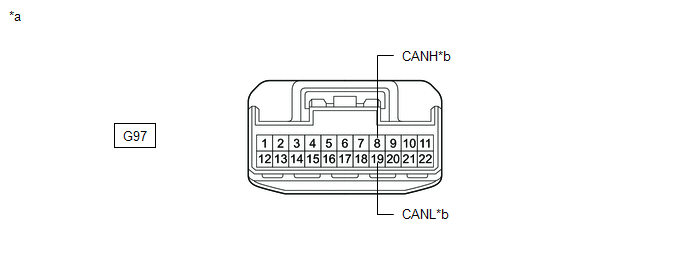 | G97-9 (CANH) - G97-20 (CANL) | Cable disconnected from negative (-) auxiliary battery terminal | 200 Ω or higher | Meter mirror sub-assembly*1 |