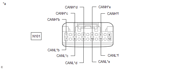 | *a | Front view of wire harness connector (to No. 5 CAN Junction Connector) | *b | to Combination Meter Assembly |