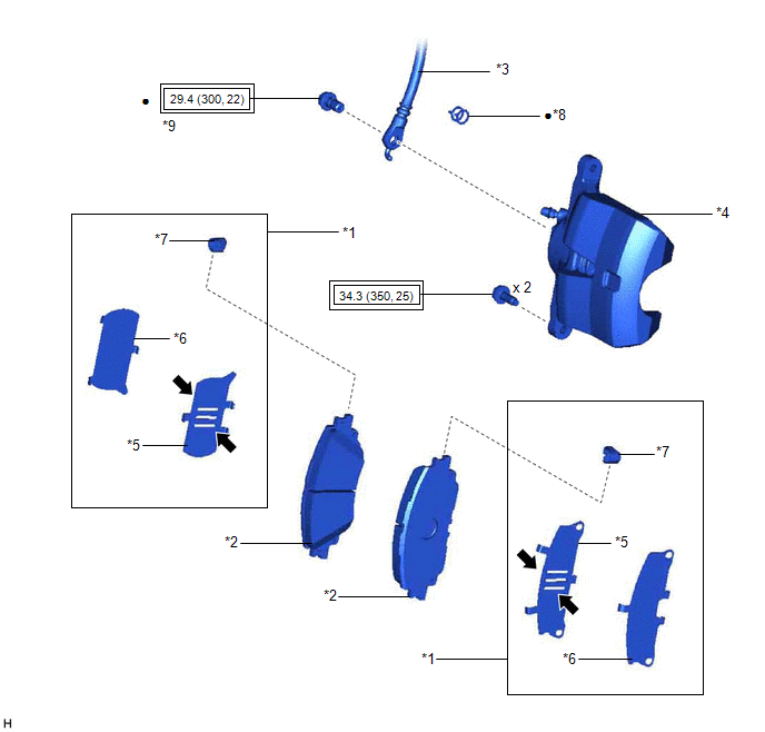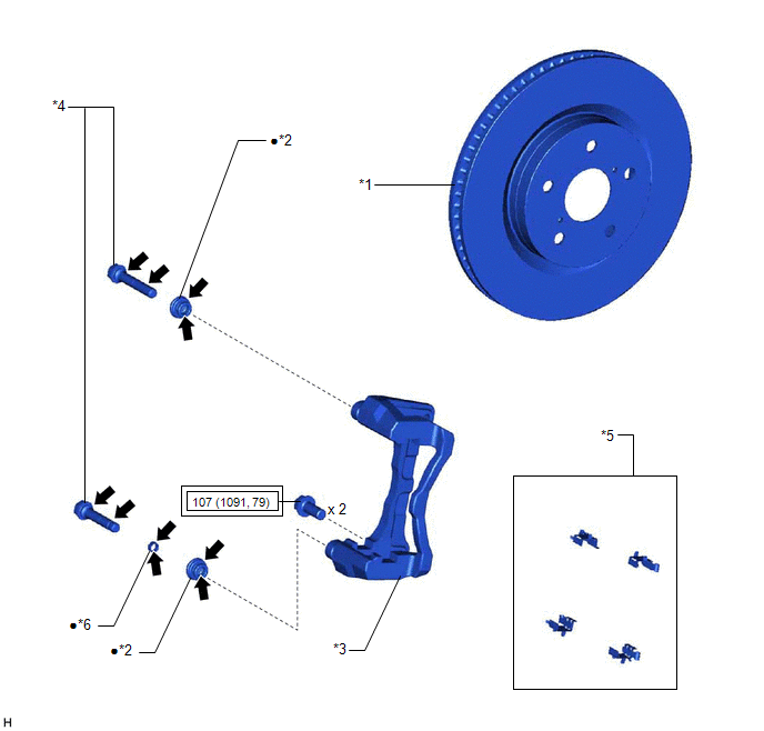 | *5 | FRONT NO. 1 DISC BRAKE ANTI-SQUEAL SHIM | *6 | FRONT NO. 2 DISC BRAKE ANTI-SQUEAL SHIM |