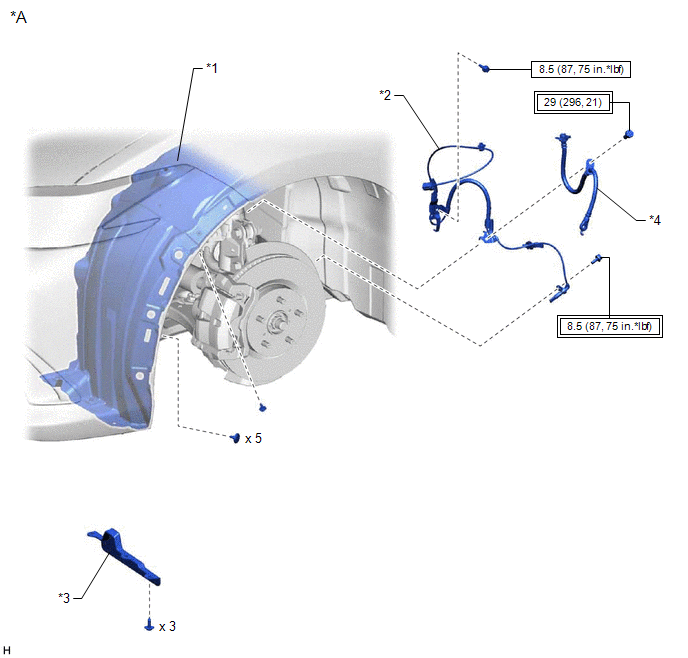 | *1 | FRONT FENDER LINER | *2 | FRONT SPEED SENSOR |