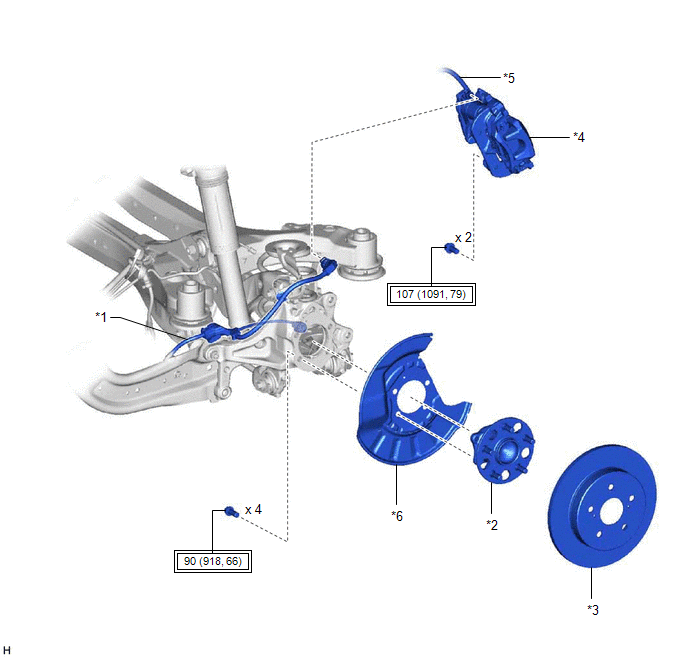 | *5 | REAR FLEXIBLE HOSE | *6 | REAR DISC BRAKE DUST COVER SUB-ASSEMBLY |