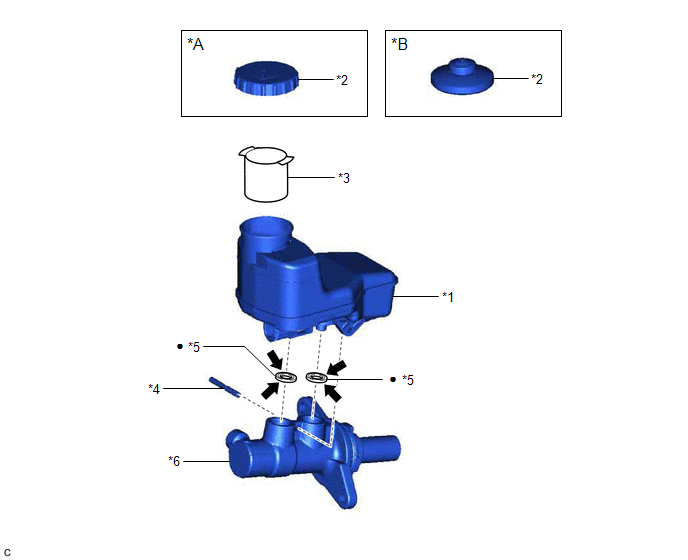 | *5 | MASTER CYLINDER RESERVOIR GROMMET | *6 | BRAKE MASTER CYLINDER BODY |