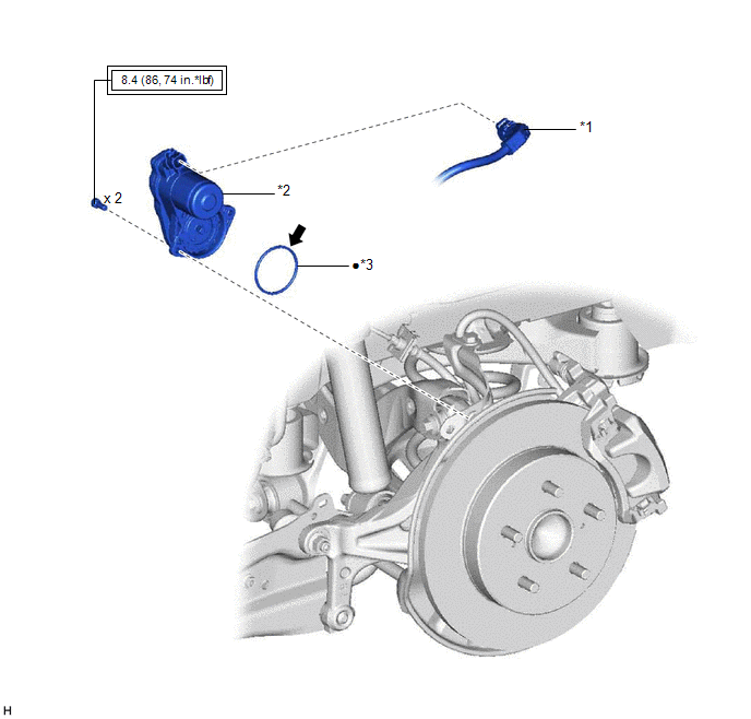 | *1 | NO. 2 PARKING BRAKE WIRE ASSEMBLY | *2 | PARKING BRAKE ACTUATOR ASSEMBLY |