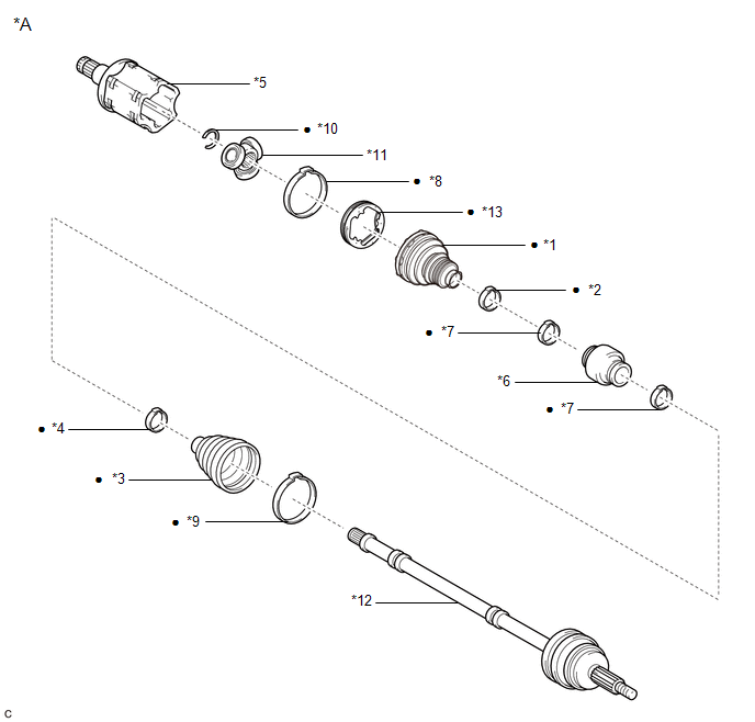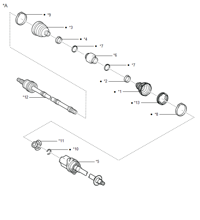 | *9 | FRONT NO. 2 AXLE OUTBOARD JOINT BOOT CLAMP | *10 | SHAFT SNAP RING |