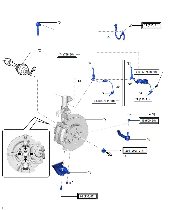 | N*m (kgf*cm, ft.*lbf): Specified torque | * | For use with SST |