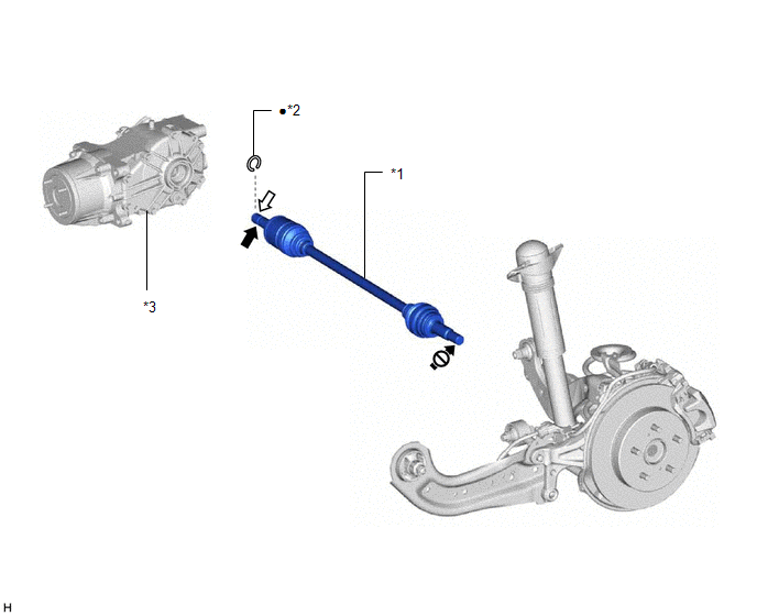| *1 | REAR DRIVE SHAFT ASSEMBLY LH | *2 | REAR DRIVE SHAFT INBOARD JOINT SHAFT SNAP RING LH |