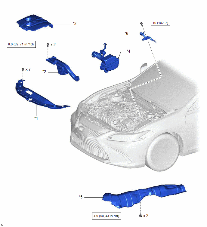 | *3 | NO. 1 ENGINE COVER SUB-ASSEMBLY | *4 | AIR CLEANER ASSEMBLY WITH AIR CLEANER HOSE |