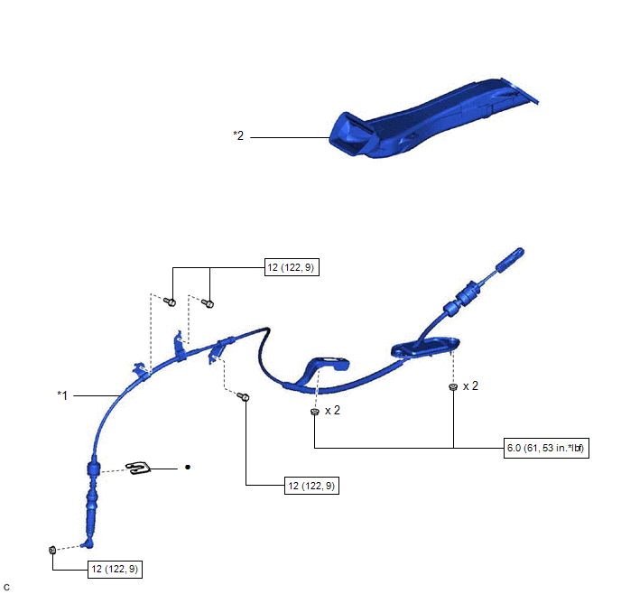 | *1 | TRANSMISSION CONTROL CABLE ASSEMBLY | *2 | NO. 1 CONSOLE BOX DUCT |